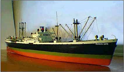 A total of 2,700 ships were constructed and whilst "built by the mile and chopped of by the yard" they are credited with saving not only Great Britain, but in the Allied cause, the whole world from disaster. The model shown is of a standard armed cargo ship serving with the United States Navy.