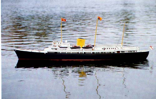 The model of Britannia is based on a fibreglass hull with bulwarks, portholes, proptube exits and bilge keels moulded into the hull.