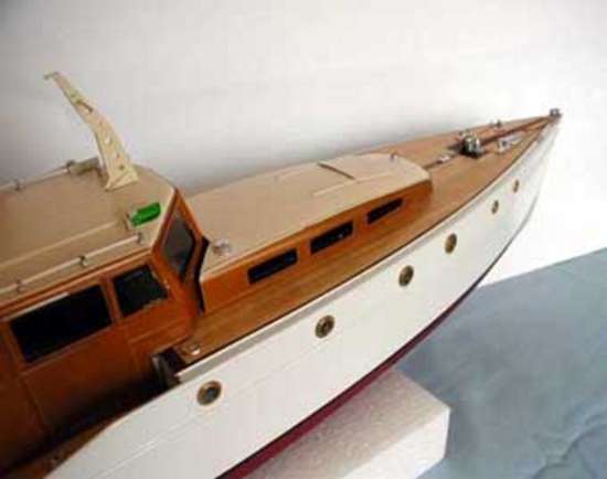 The model (kit) is based on a glass fibre hull with rubbing strip and moulded into the surface of the hull.